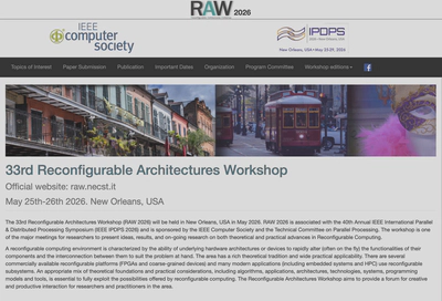 RAW is one of the longest-running and most prestigious workshops in the reconfigurable computing community, now entering its 33rd edition. The workshop will be held in New Orleans, USA, on May 25-26, 2026, in conjunction with the 40th Annual IEEE International Parallel & Distributed Processing Symposium (IEEE IPDPS 2026). Sponsored by the IEEE Computer Society and the Technical Committee on Parallel Processing, RAW provides a premier forum for researchers and practitioners to share advances in FPGA architectures, hardware acceleration, and reconfigurable systems.